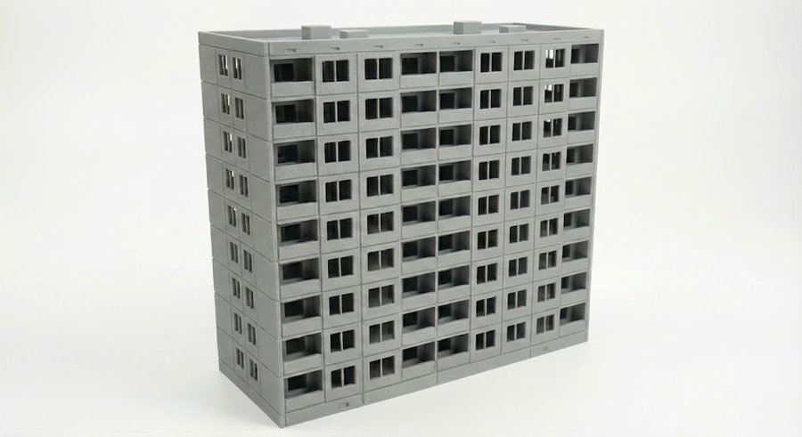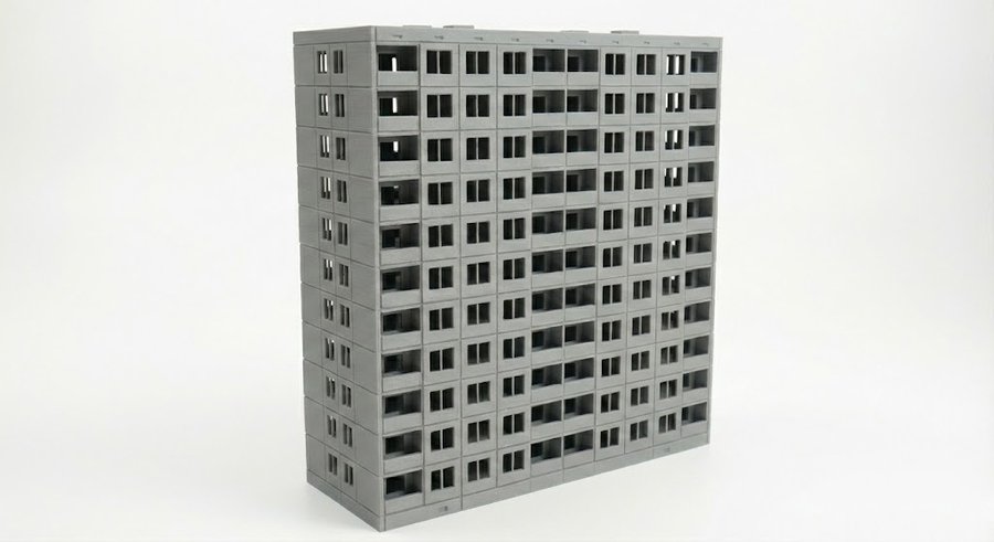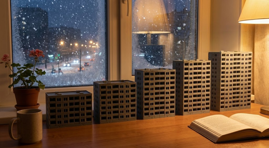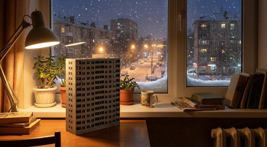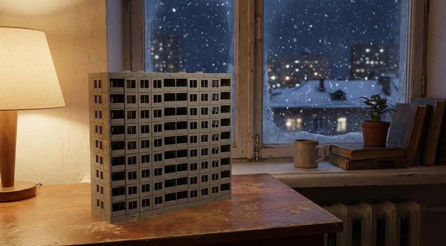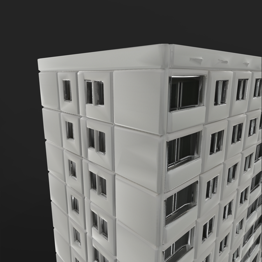 Панельки — феномен постсоветской культуры. Серые панельные многоэтажки есть в любом городе. Они стоят монолитом, становясь своего рода каменным лесом со своей экосистемой внутри. Я создала пять миниатюр панелек при помощи ИИ для того, чтобы эти самые панельки стали некими сувенирами. Каждые панельки отличаются числом этажей и возвышаются друг над другом.
