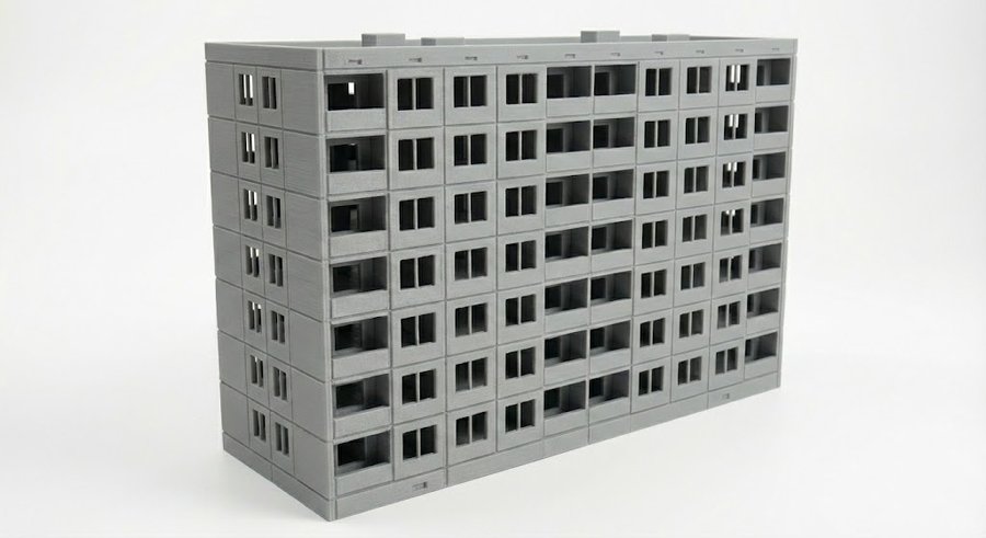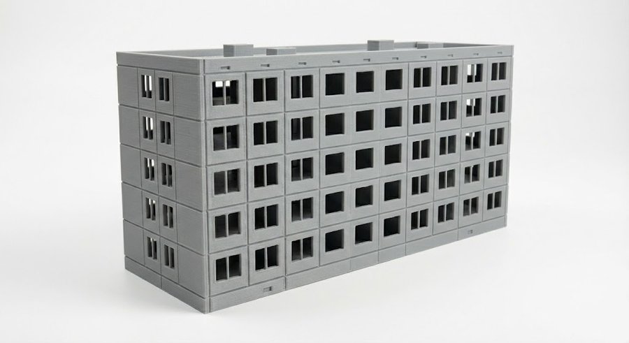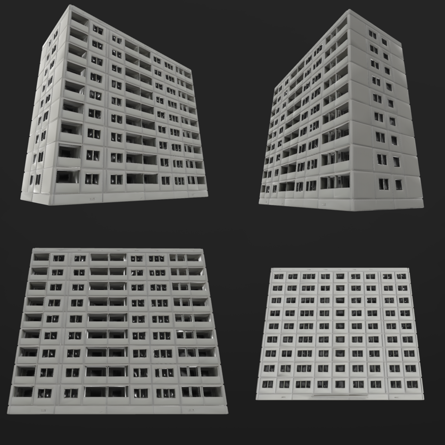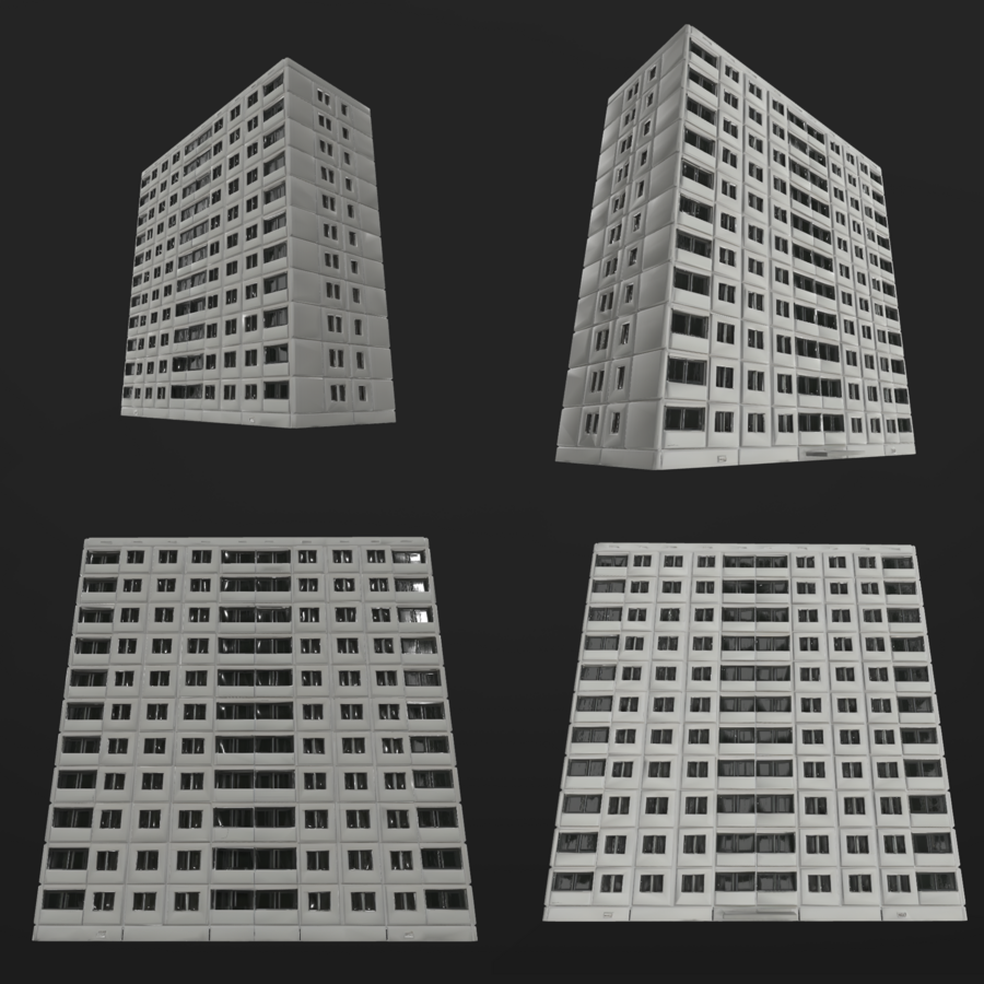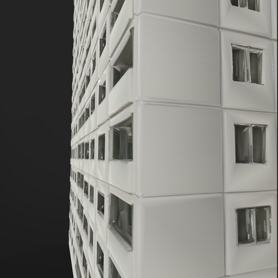 Панельки — феномен постсоветской культуры. Серые панельные многоэтажки есть в любом городе. Они стоят монолитом, становясь своего рода каменным лесом со своей экосистемой внутри. Я создала пять миниатюр панелек при помощи ИИ для того, чтобы эти самые панельки стали некими сувенирами. Каждые панельки отличаются числом этажей и возвышаются друг над другом.