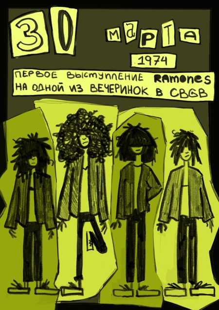 1. 30 марта (1974) — первое выступление Ramones на одной из вечеринок в CBGB; 2. 6 ноября (1975) — первое выступление Sex Pistols