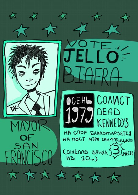 1. Осень 1979 — солист Dead Kennedys Джелло Биафра на спор баллотируется в мэры Сан-Франциско; 2. 8 апреля (1977) — выход первого альбома The Clash