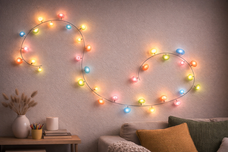 - один из товаров магазина — светодиодная гирлянда, состоящая из скалолазных зацепок.