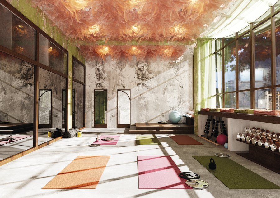 - из этой потребности возникла идея организовать в выбранном пространстве некое подобие спорт-центра, но нацеленное прежду всего на удовольствие и отдых, а не на тяжелую работу над собой, как в обычных спорт-залах.