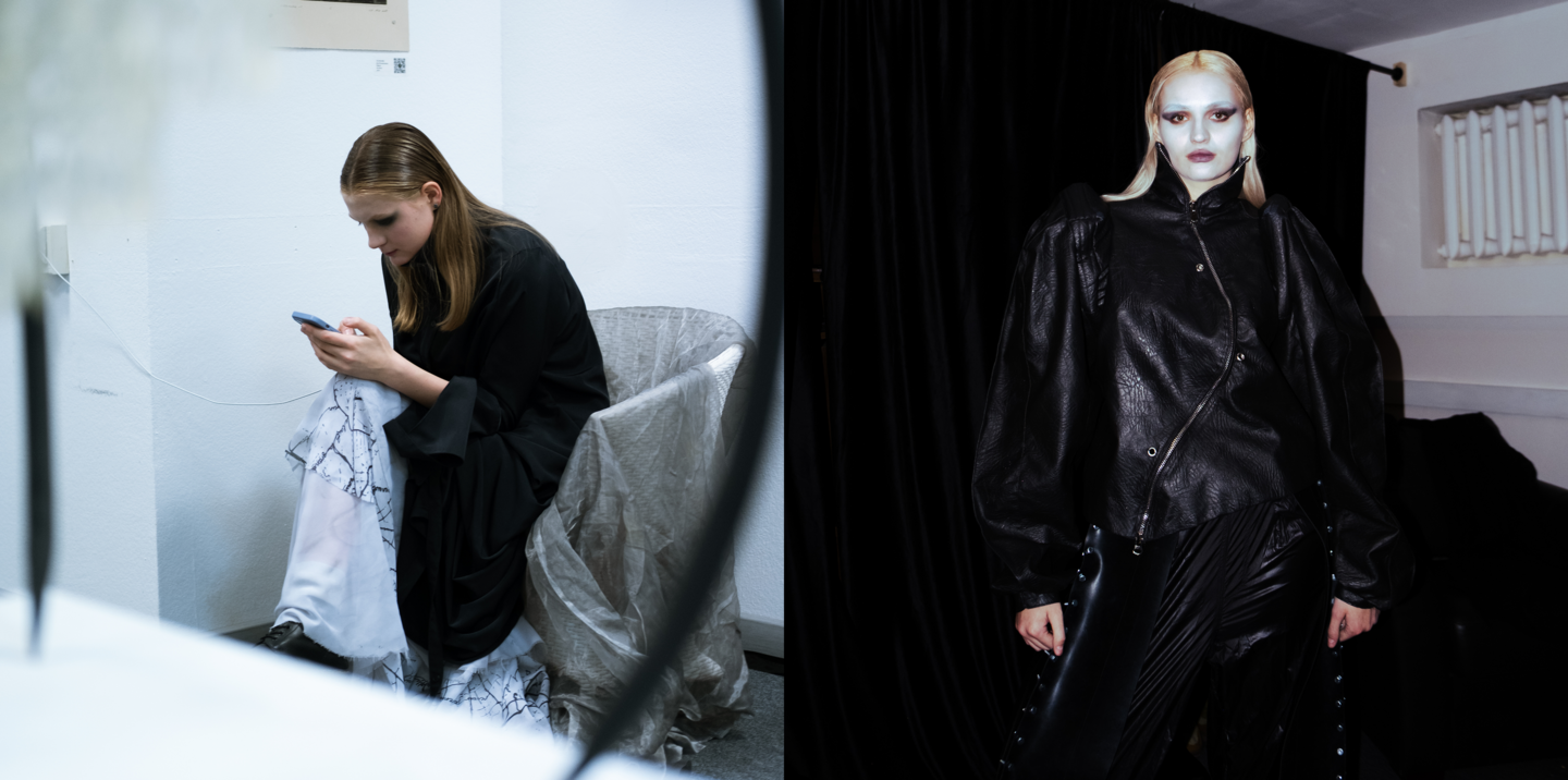 После изменения концепции показа, когда было решено сместить акцент на перформативность и статичность моделей в оконных проёмах, помимо классического варианта проведения фэшн-показа, потребовалась адаптация образов под новый формат. Это включало анализ их пластики, визуальной выразительности и способности «работать» как статические художественные объекты.