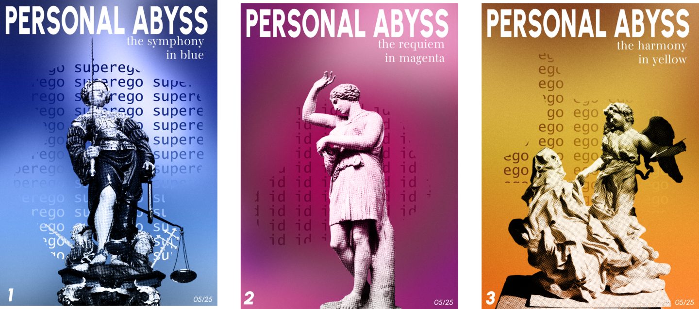 Комикс «personal abyss» рассказывает о человеке, отправляющемся в путешествие по собственному подсознанию, чтобы разобраться в сложных воспоминаниях и найти выход из экзистенциального кризиса. В этом путешествии он сталкивается с олицетворениями своих страхов, желаний и моральных принципов, представленными в виде ярких и сюрреалистичных образов.