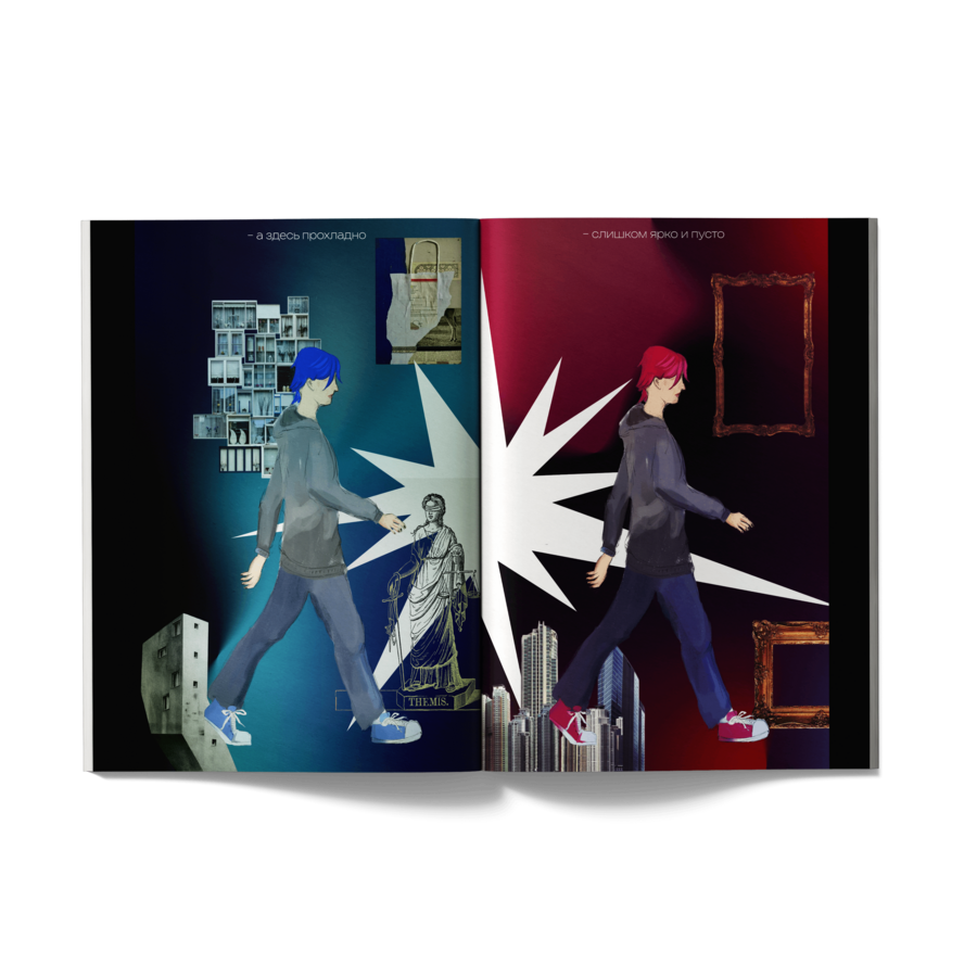 Ключевым элементом проекта является визуальный стиль. Техника коллажа, сочетающая в себе рисунок, цифровую графику, фотографию и другие медиа, позволяет создать многослойную и фрагментированную картину внутреннего мира. Этот подход отражает нелинейность мышления и сложность человеческой психики.