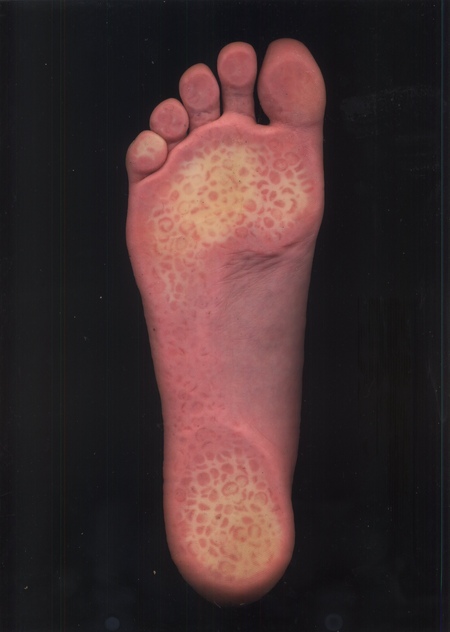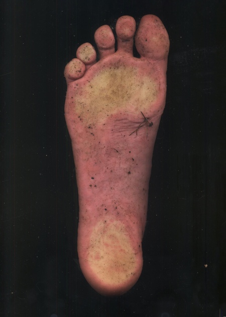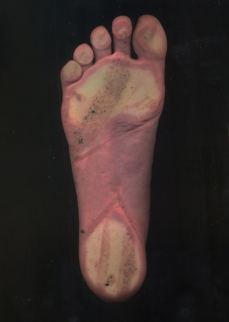 Документируя отпечатки и следы, остающиеся на ступнях после контакта с естественной средой, я нахожу прямое доказательство взаимопроникновения: изменения тела становятся видимым свидетельством взаимодействия человеческой плоти и сил природы.