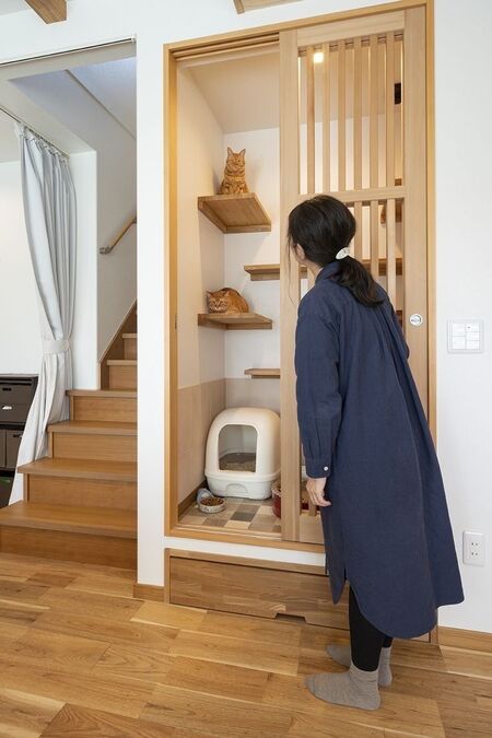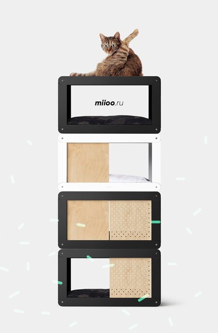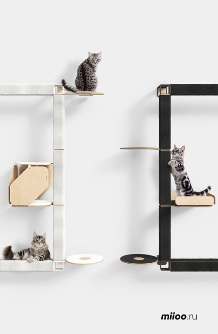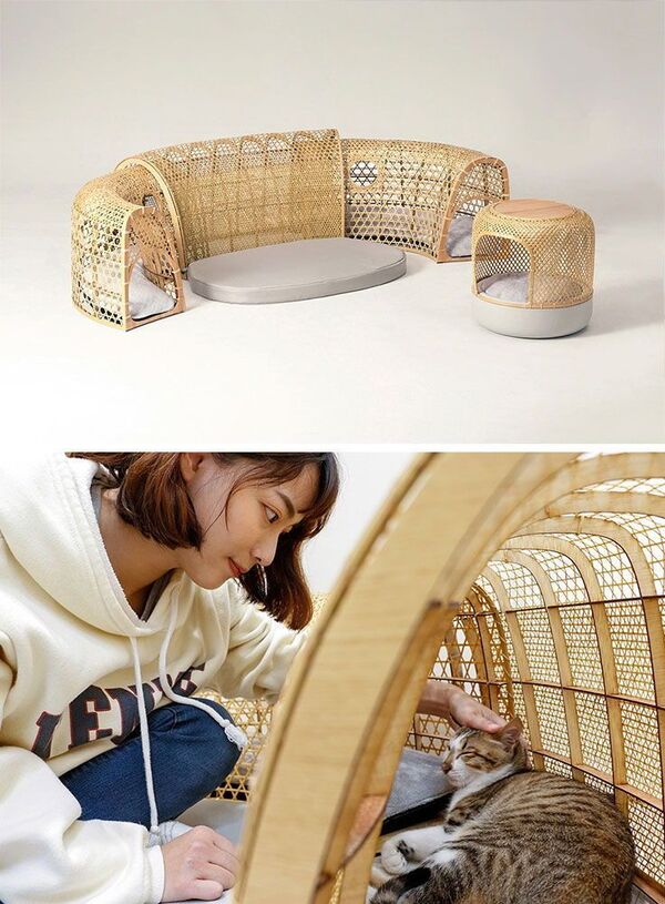 Встраиваемый и многофункциональный дизайн: каркас для лазания по кошкам сочетается с книжной полкой, конура становится частью основания дивана, а ящик для кошачьего туалета прячется в боковой шкаф.Дизайн направлен на экономию пространства и улучшение визуальной целостности.