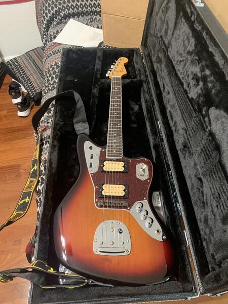 Курт Кобейн выбирал модели Jaguar и Mustang не из-за красоты, а потому что они стоили копейки в ломбардах. Побитый лак, наклейки, отсутствующие ручки — инструмент должен был выглядеть так, будто он пережил войну. Кобейн даже сам склеил фото двух гитар, чтобы создать Jag-Stang — уродливый, но честный гибрид.