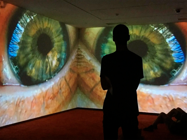 Зритель не может сразу различить начало и конец из-за бесконечного цикла музыки и сходства изображений. Сразу после первой последовательности, две стены заполняет глаз. Он имеет такой же зелено-голубоватый оттенок, как и море. Отражение глаз проецируется в угол на две стены зеркально, из-за чего создается эффект воронки. С одной стороны, в результате этого, человек на короткое время теряется в глубине проекции, с другой стороны, площадь зеркального глазка препятствует полному погружению в «Нирвану» подводного мира.