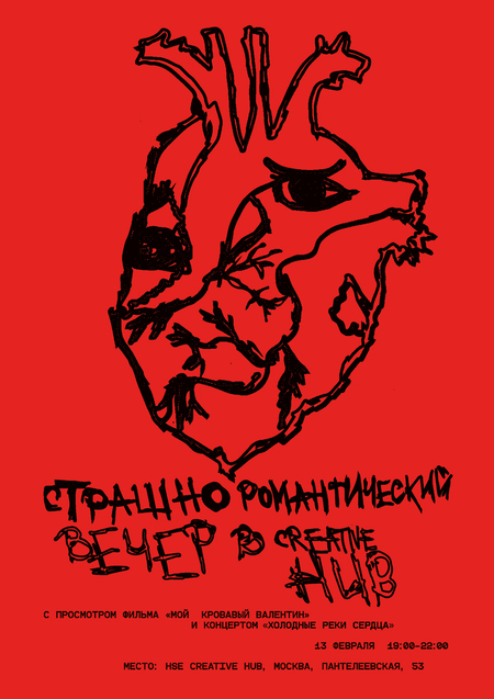 It was held on February 13, 2025 at HSE Creative HUB. The poster depicts a frightening human heart that reflects a combination of horror and romance.