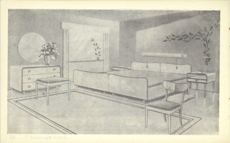 В каталоге 1960 г. можно заметить, как меняется визуальное содержание каталогов. Изображения выходят на первый план. Появляются изображения мебели в интерьере, технические чертежи и компактные композиции, показывающие мебель в разобранном виде. Эти элементы делают издание не просто каталогом, а руководством по использованию, придавая ему функциональный характер.