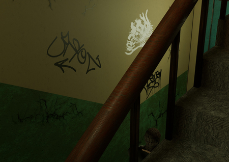 Проект посвящен эстетике типовых панелек и узнаваемой атмосфере их подъездов. В центре композиции андеграундный персонаж со старым телефоном, дополняющий суровый образ спального района