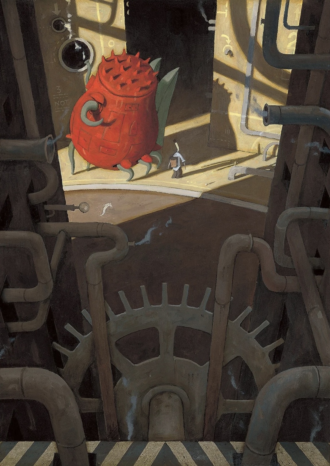 Огромные механизмы встречаются в «Tales from Outer Suburbia», где гигантские устройства, трубы и конструкции окружают персонажей, создавая чувство подавления и бесконечного, чужого мира. Механизмы не служат угрозой, но визуально подчёркивают масштаб пространства и хрупкость человека в нём.
