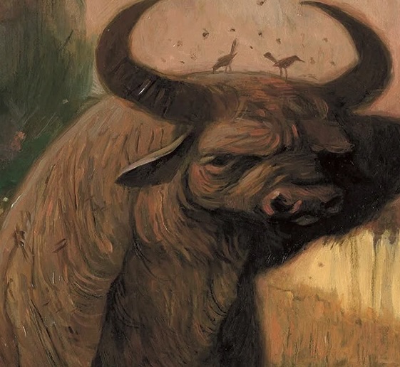 В «Tales from Outer Suburbia» есть иллюстрации, где дети находятся рядом с фантастическими объектами или существами, но не пытаются установить контакт. Например, в истории о таинственном буйволе герой просто стоит возле огромного животного, не решаясь приблизиться. Эта дистанция показывает не страх, а глубокую внутреннюю растерянность — человек чувствует, что «не знает, как правильно взаимодействовать» с миром.