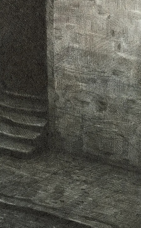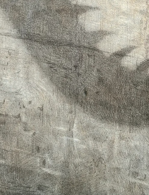 Пастель добавляет мягкость и атмосферу. Её бархатистая фактура создаёт эффект тумана, пыли или раннего утра — состояний, которые соответствуют темам одиночества и растерянности. Пастельные слои ложатся поверх карандашных линий, слегка скрывая их, что даёт ощущение зыбкости и «нефиксированного» мира.