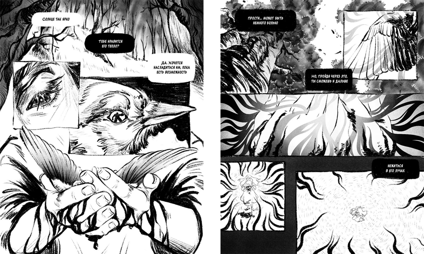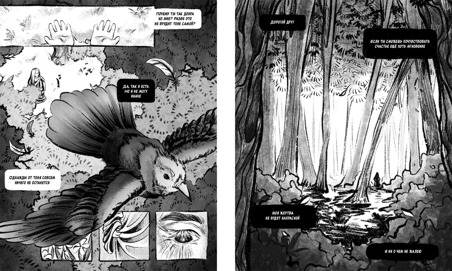 4 полосы комикса о важности заботы о себе через историю девочки и птицы.