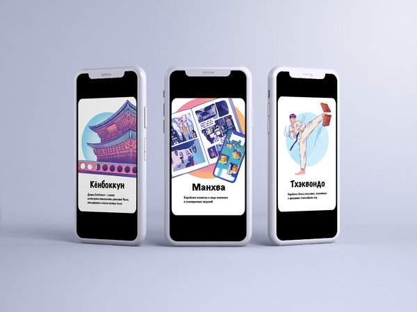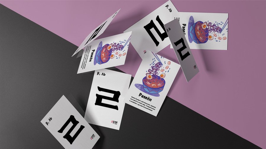 Он выполнен в виде двусторонних карточек, с одной стороны которых находится буква, а с другой — предмет / место или особенность, отсылающая к культуре Южной Кореи и начинающаяся на эту букву. Карточки станут хорошим дополнением к работе репетиторов и учителей корейского.
