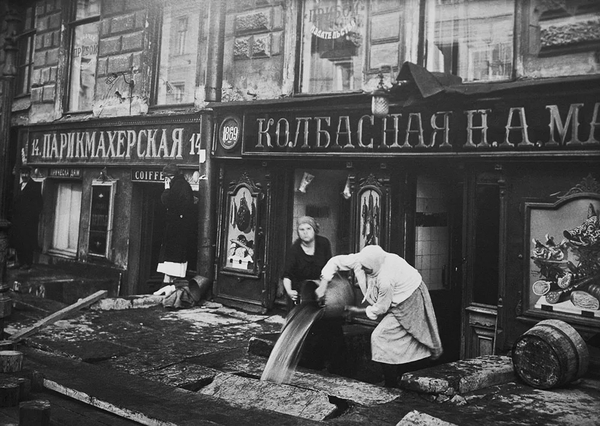 Карл Булла, Книжный магазин К. Л. Риккера, 1902 г. Карл Булла, Работницы магазинов вычерпывают воду из торговых залов после наводнения, 1914 г.