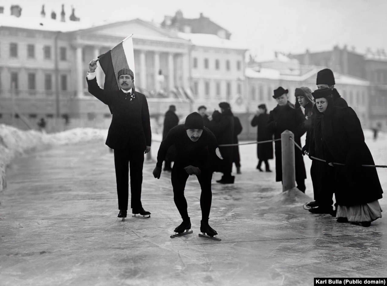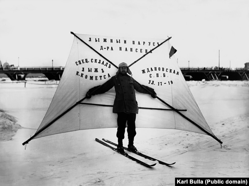 Карл Булла, Конькобежец на старте, начало 1900-х. Карл Булла, Демонстрация лыжного паруса на замерзшей Неве, около 1910 г.