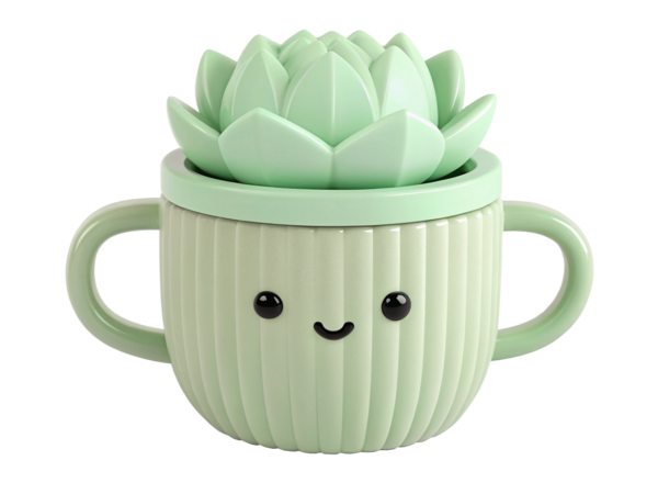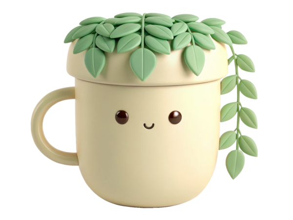 2. Крышка в форме растения Декоративный элемент, определяющий визуальный образ каждого объекта. Крышка плотно устанавливается на корпус кружки.