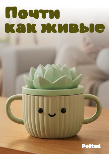 Проект представляет собой серию функциональных объектов, маскирующихся под декоративные комнатные растения. На первый взгляд это милые растения в горшочках, однако каждый объект является кружкой с крышкой, предназначенной для повседневного использования.