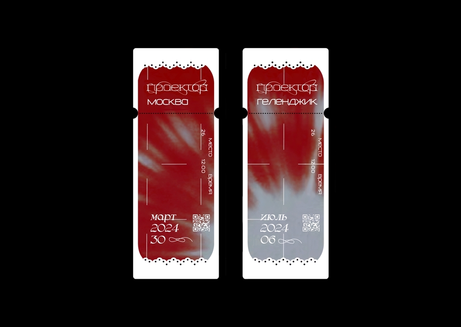 Затем использовала билеты как образец для Gemini, многократно генерируя изображения, пока не получила желаемое. В референсы я прикрепляла айдентику прошлогоднего «Праектора».