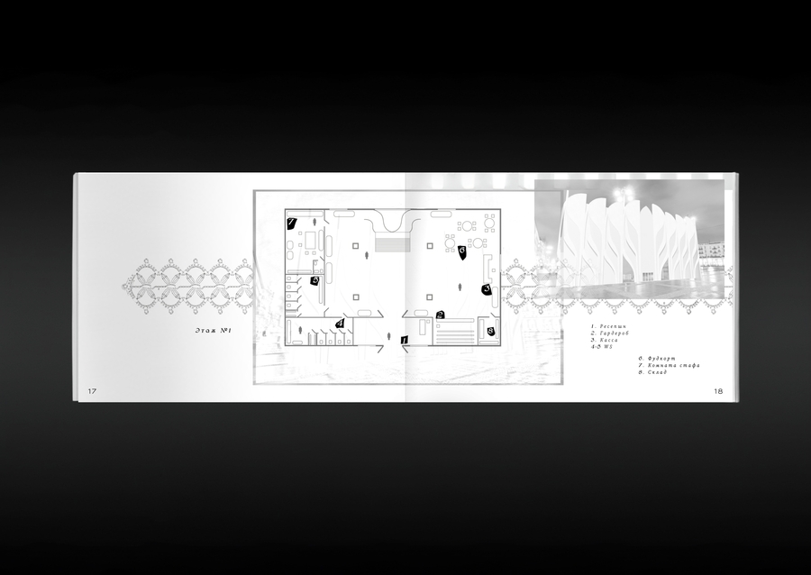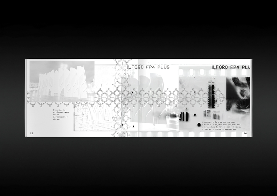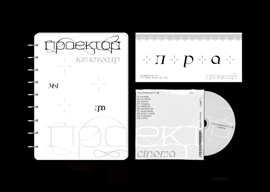 «Праектор» — это особенное место, где возможно приоткрыть занавес истории. Плёнка для фильма показывает ваших предков и дальних родственников. В айдентике кинотеатра ключевой паттерн — кружево, которое символизирует связь предков и будущих поколений: эта связь уникальна, словно узор. В интерьере и экстерьере кинотеатра ключевые визуальные композиции олицетворяют цветение и рост — в деталях можно разглядеть дерево, лепестки, перья.