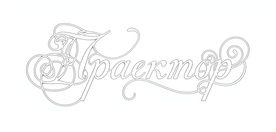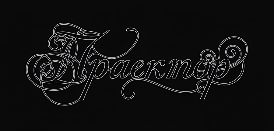 Промпт для генерации: Сделай генерацию логотипа с надписью «Праектор». Буквы должны быть белыми с обводкой. Добавь в начале слова много изгибающихся белых линий. Они должны округляться, а где-то кончиком соприкасаться с буквами, образуя окружности. На конце слова повтори то же самое.