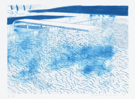 В результате одни и те же приемы придают картине Кэллинса монотонности и структуры, а литографии Хокни — хаоса и асимметричности.