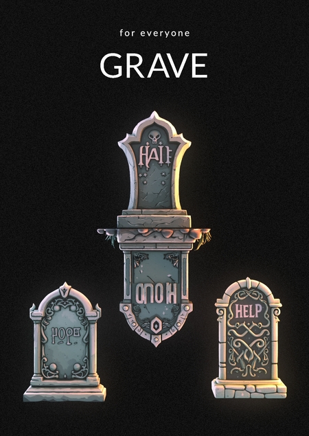 Серия стилизованных фигурок надгробий в духе Хэллоуина представляет собой коллекцию из пяти миниатюрных моделей, каждая с готическим силуэтом. Надписи на лицевой стороне надгробий начинаются с буквы «H», символизируя эмоциональный спектр: Hate, Help, Hold, Hope, Hurt