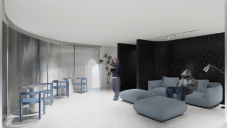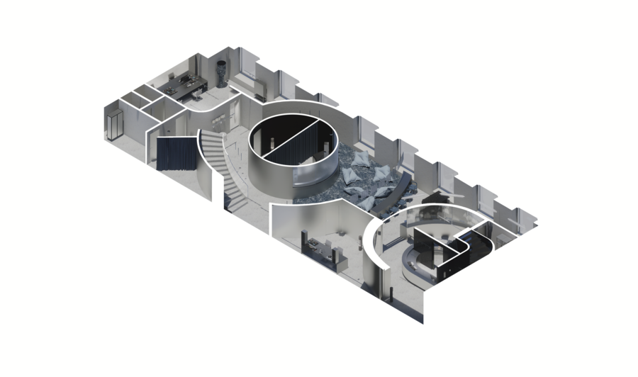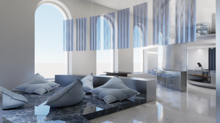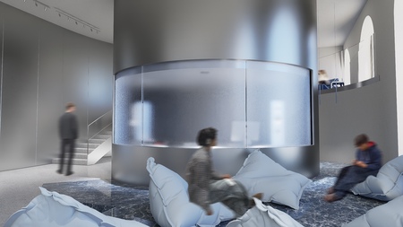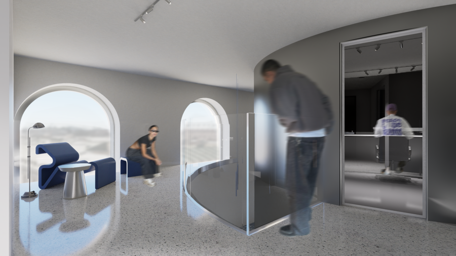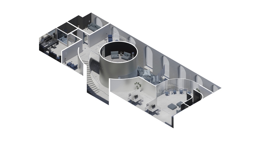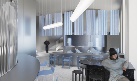 Архитектурный образ пространства вдохновлен диджейским пультом и музыкальными элементами.