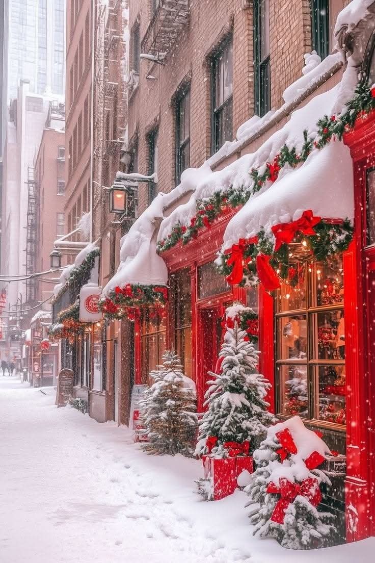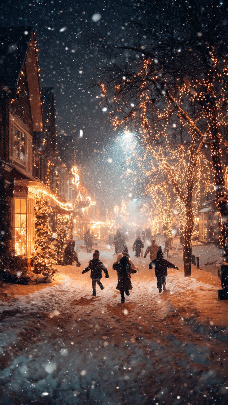 3. Снег как материал и символ. Снег придаёт улицам мягкость, а шум становится тише, цвета — светлее. Сугробы, следы на снегу, снежинки на свету — визуальный код Нового года.