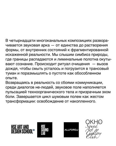 Pure Body Data — это многоканальная звуковая инсталляция, погружающая нас внутрь человеческого тела. Это размышление о границах антропоморфности, о том, что делает нас человеком. Синтезированные тембры озвучивают органы (сердце, мозг, суставы, связки, кровеносная система, легкие и желудок) некого бесполого существа, почти киборга, но еще человека.