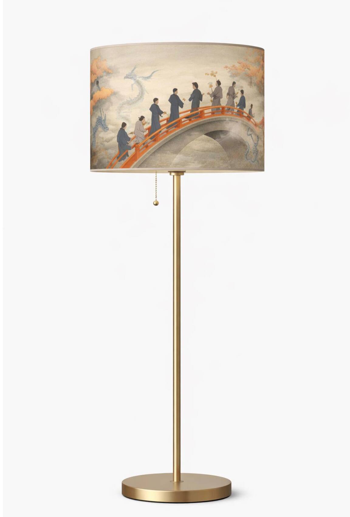 Мост как символ связи между мирами, по которому следуют люди. Они окружены проявлениями стихий и мифическими стражами (драконы и фениксы), что указывает на их взаимодействие с божественным и неизбежность прохождения через все этапы бытия, будь то паломничество, переход в иной мир или просто осмысление своего места во вселенной.
