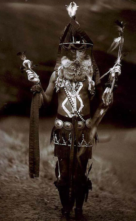 Представитель племени Навахо в церемониальной маске и костюме. Фото 1904 года