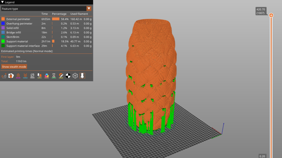 2. Печать мастер-модели Инструменты: FDM 3D-принтер, слайсер (PrusaSlicer) Материалы: PLA-филамент Последовательность: Загрузка STL в слайсер Настройка печати (вертикально, поддержки по необходимости) Печать мастер-модели Контроль геометрии после печати