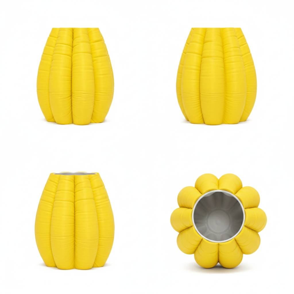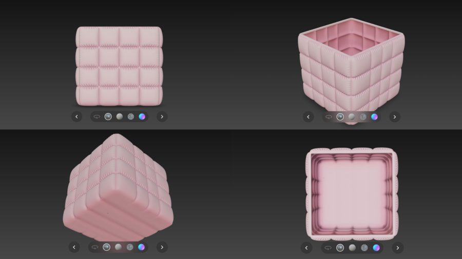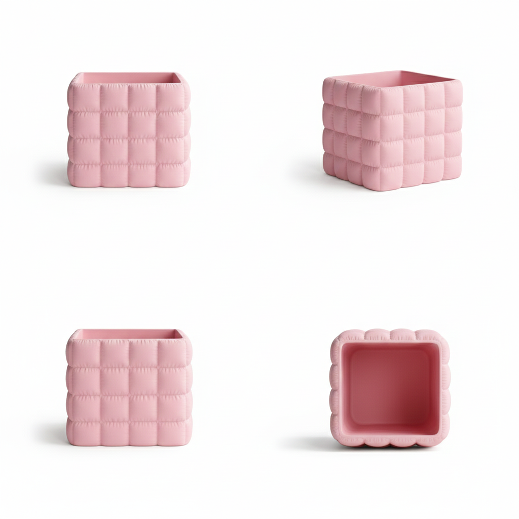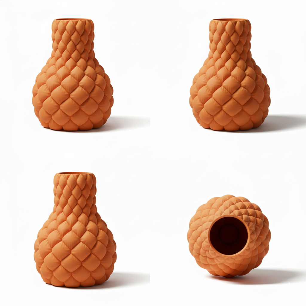 Quiltware — Коллекция керамических ваз, вдохновлённых визуальной мягкостью стёганых одеял. Каждая форма словно «запоминает» отпечаток ткани, переводя уют текстиля в жёсткую материю. Это игра с ощущениями: холодная керамика выглядит так, будто её хочется обнять. Вазы призваны создать в доме ощущение защищённости, как тёплое покрывало.