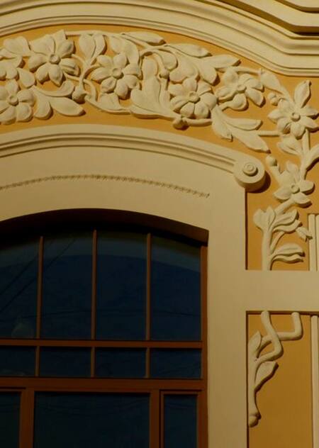 Эти цветочные мотивы можно обнаружить в самых разных техниках и материалах, к которым обращались мастера модерна. Они оживают в переливах майоликовых панно и мозаик, воплощаются в ажурных кованых элементах оград и балконов, отливаются в лепнине на фасадах и в интерьерах.
