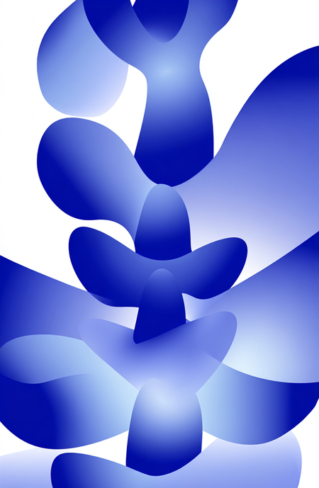 Midjourney — Abstract organic shapes in vibrant gradient blue tones, smooth flowing forms overlapping with soft lighting and subtle glow, modern minimal design, fluid motion, futuristic composition, digital art style, white background, high contrast, clean and elegant aesthetic, 3D gradient illustration, vector-style smooth transitions, contemporary visual art.