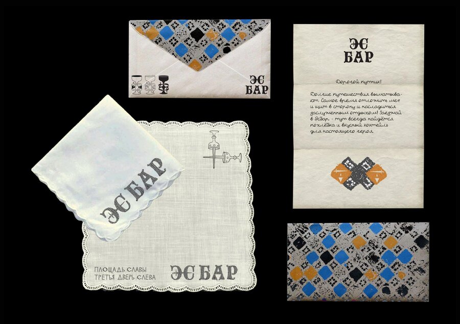 Я начала переделывать фирменный стиль с логотипа. В моём изначальном проекте я создала для бара текстовый логотип и дополнительный фирменный знак, который можно использовать в качестве печати. Я решила оставить эту идею и создать для Эсбара новый логотип и фирменный знак.