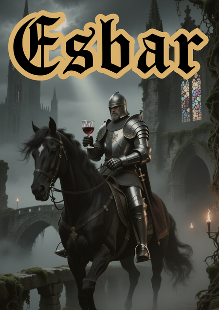 Промт 1: create an inscription Esbar, medieval style Промт 2: create a logo for a fantasy bar for knights, medieval style, minimalistic