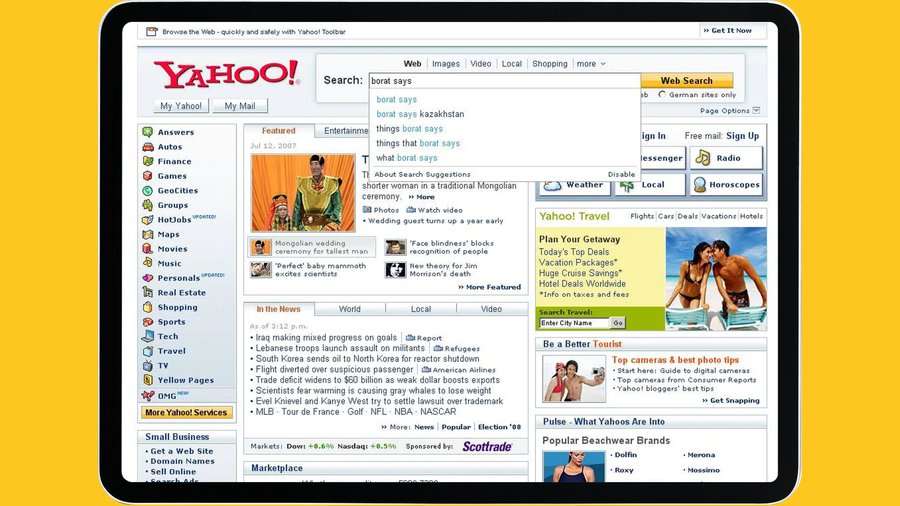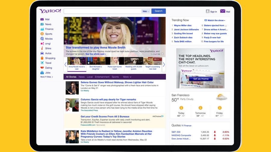 Эволюция интерфейса Yahoo! 1994–2019 гг.