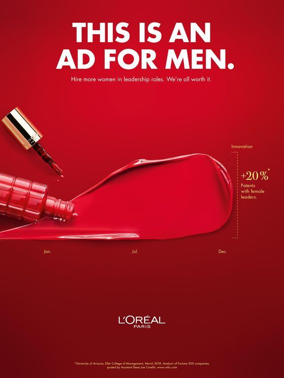 В приеме, который называется «Сила слова и знака», главное — это позволить потребителям «узнать» себя среди целевой аудитории бренда. Слоганы и заголовки должны выстраивать диалог на одном языке с клиентами, обнажать уникальные проблемы людей, чтобы, смотря на рекламу, они смогли разглядеть в ней свои собственные черты.