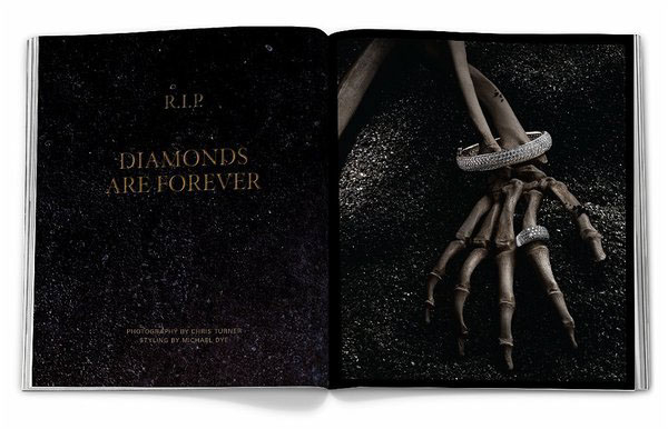 Например: ювелирный дизайнер Фабрис Фрере продемонстрировал свои «вечные» бриллианты на фоне могильных камней, с помощью почерневших скелетов.