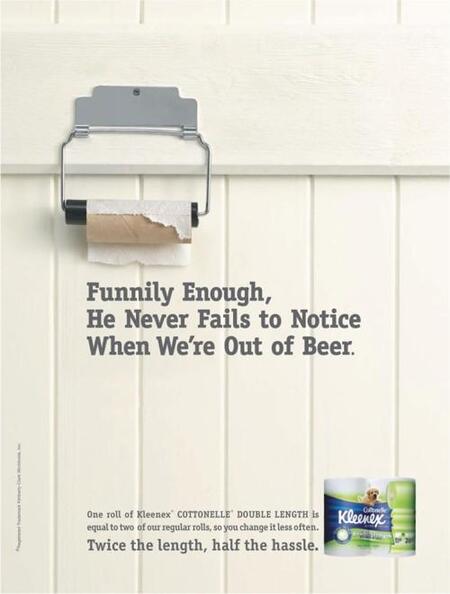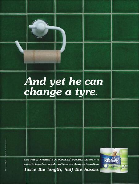 А Kleenex в своей рекламной компании говорит с аудиторией женщин, которые устали от того, что их мужья и партнёры не могут заменить закончившийся рулон туалетной бумаги на новый.