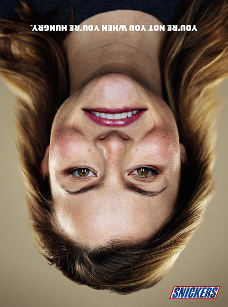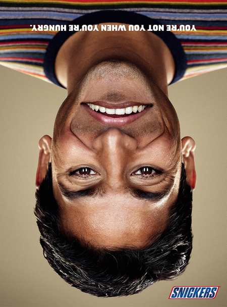 «You’re not you when you’re hungry» Snickers 2010 url:https://campaignsoftheworld.com/wp-content/uploads/2015/04/Snickers-Hungry-Faces-cotw-2.jpg (Дата обращения 18.11.2025)