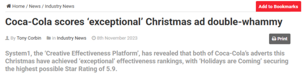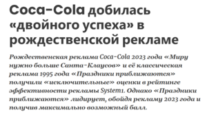 Coca-Cola — «Holidays Are Coming» — ежегодная повторяемая кампания, превратившаяся в целый ритуал ознаменования начала праздников, благодаря устойчивым ностальгическим образам.