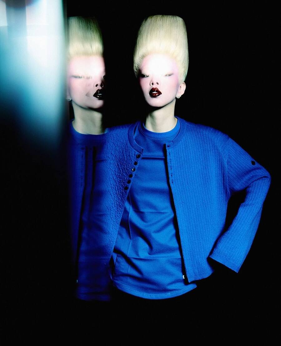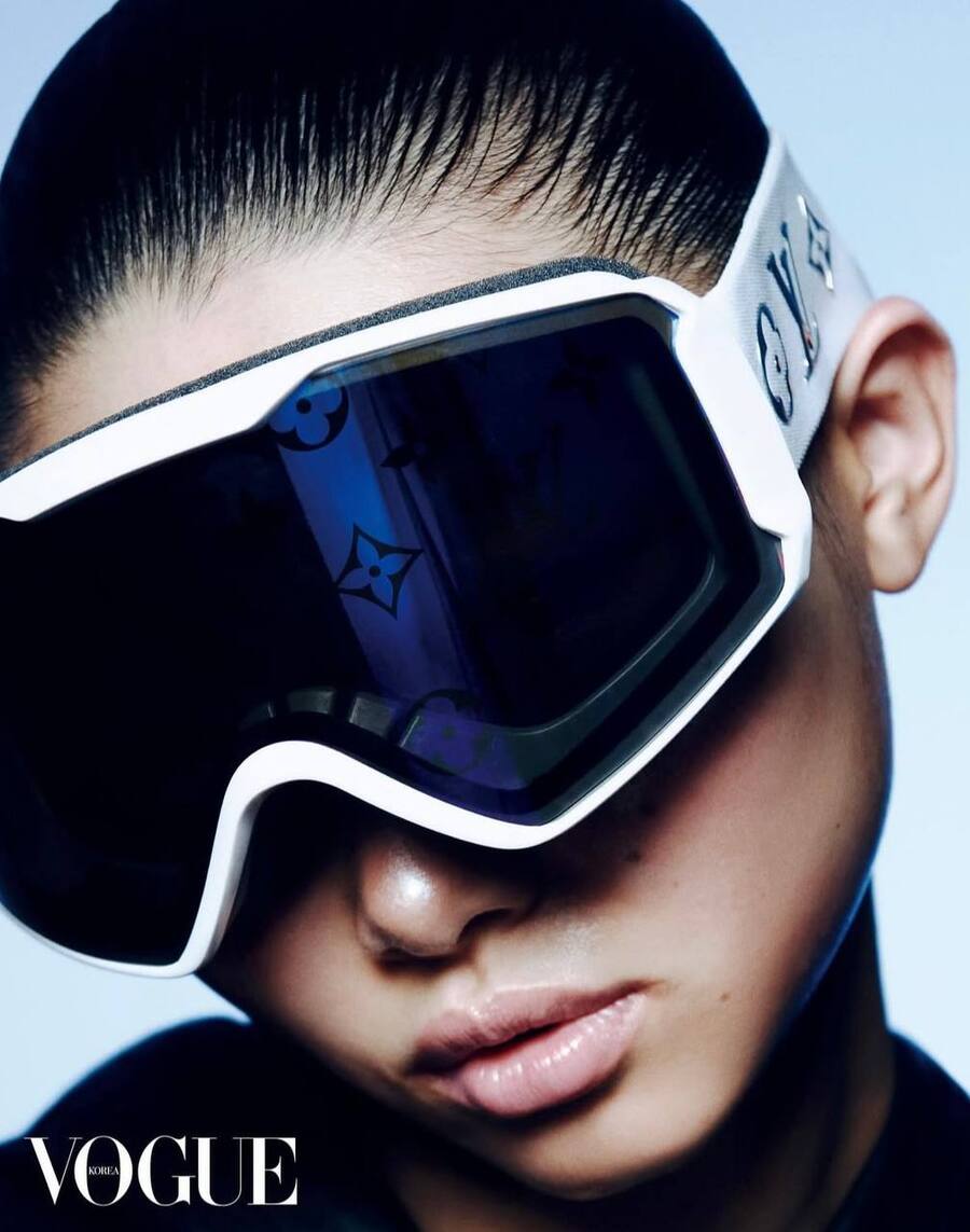 Очки и аксессуары подаются на фоне стеклянных, глянцевых или молочно-матовых поверхностей. Здесь соединяются холодная цифровость и мягкое сияние кожи моделей.