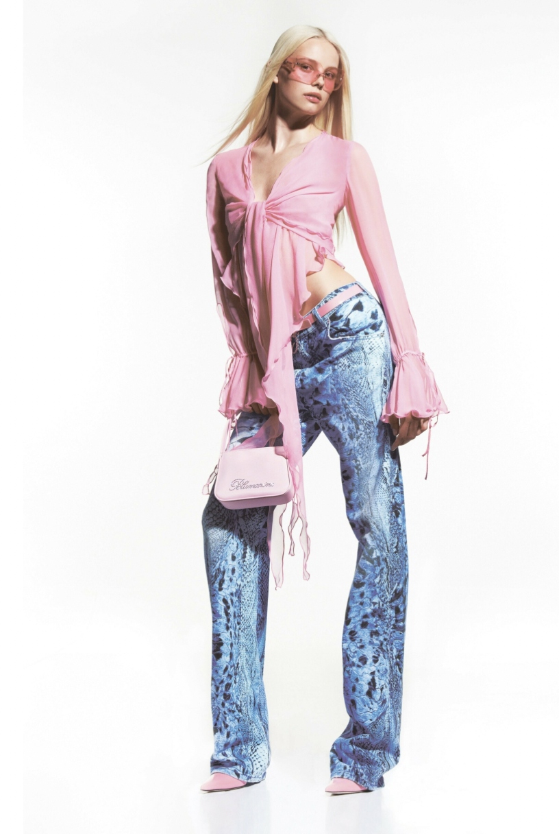 Y2K-ренессанс (2020–2024) — реакция на цифровую культуру: мемы, TikTok-референсы, мода, которая «играет» с ретро. Международные бренды (Miaou, Blumarine) и дизайнеры подхватили элементы: блеск, пластиковые аксессуары, дворцы отражений. Отличие современного Y2K: смещение от китча к продуманной эстетике — «умная ностальгия», когда каждая деталь работает на бренд-нарратив.