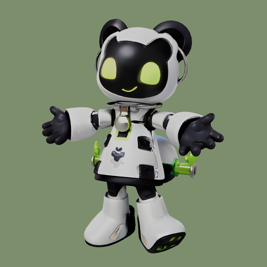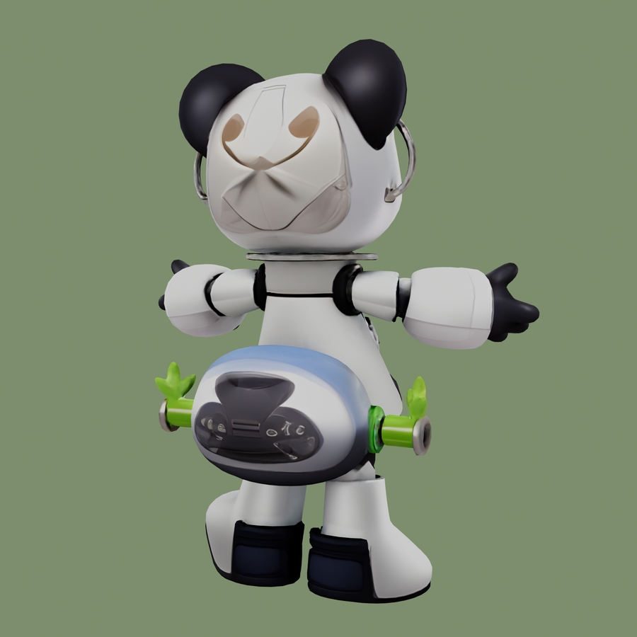 RoboPanda, сгенерированная 3D модель со сгенерированными текстурами
